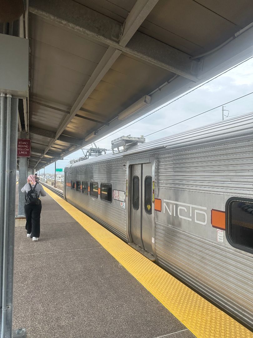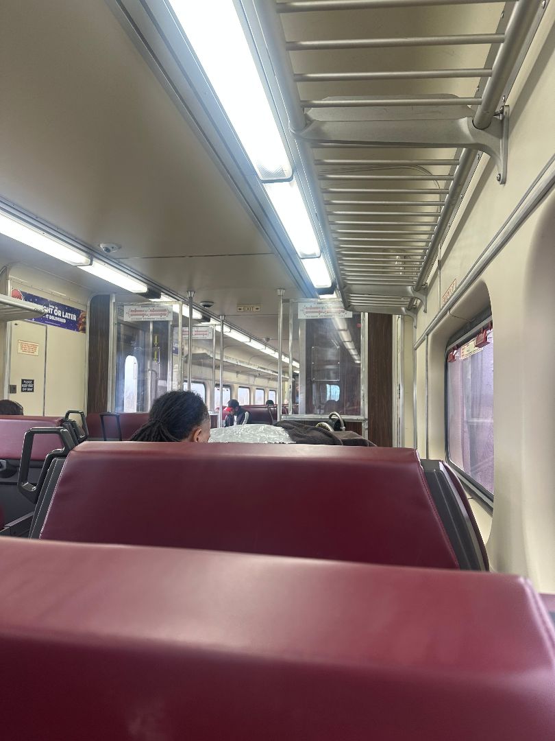 The train arrived a few minutes late, thought I wasn’t expecting on time performance from an American train. We hopped on board, and while not the most comfortable train, it was fine for being a commuter line. There was even a USB-C and USB-A port on the back of the seat that worked. Unfortunately, I couldn’t really see out the side of the train because the windows had those black dots all over them from when an advertisement is plastered on the outside of the window, like on a bus. The train was also really warm and muggy, and it felt like they didn’t have any outside air coming in.