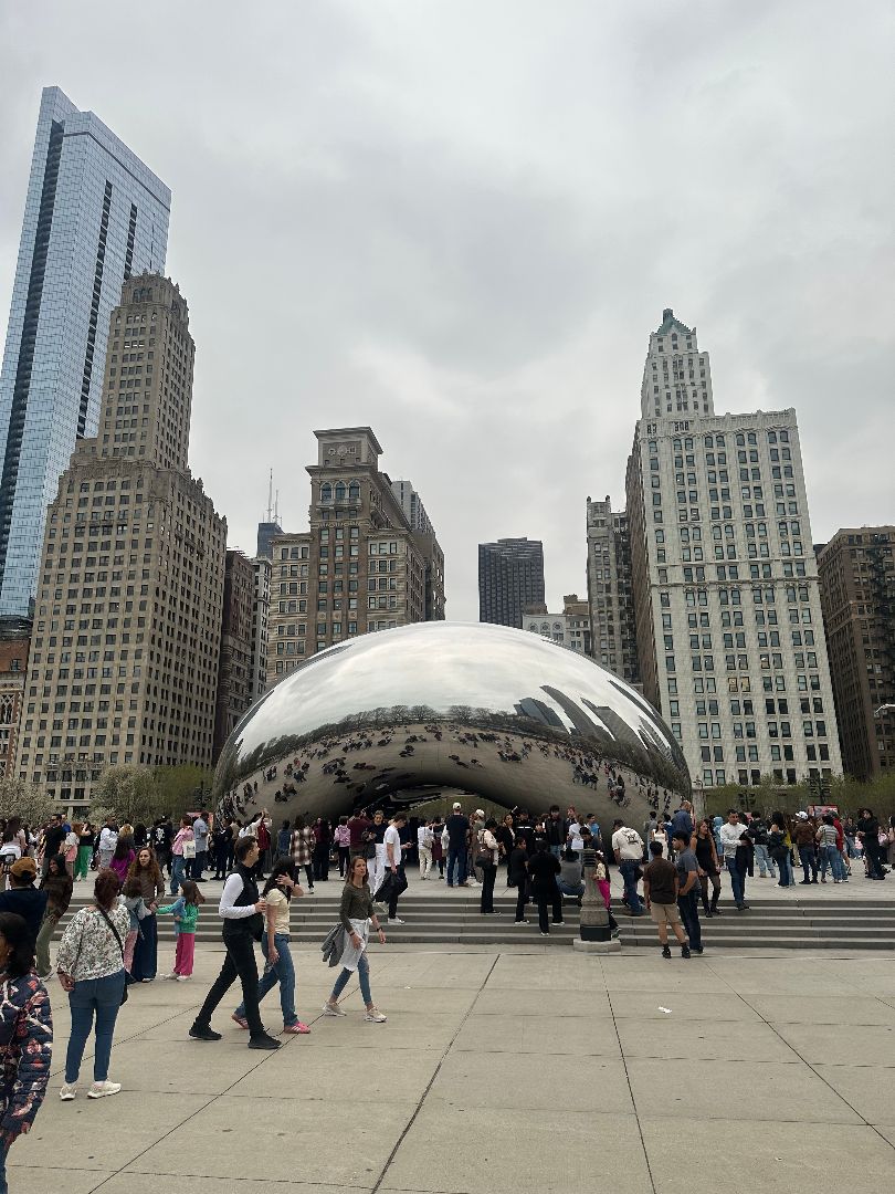 After 45 minutes we arrived in Chicago and walked another 10 minutes to the waterfront of Lake Michigan, where we dipped our hands in the lake just to say we’ve done it. Once that was done, we walked a further 15 minutes through a very nice park to… The Bean! It’s actually called Cloud Gate, but it’s a massive bean and I think “The Bean” is a better name for it, and what everyone calls it. It was super, super busy so we weren’t going to get a good photo with it, but we were able to get photos of it, and walk underneath it to the other side. Apparently some people lick it, but Kyle wouldn’t let me do that.