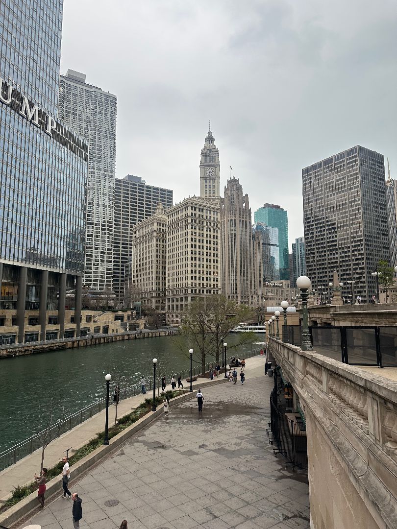 Our walk took about 25 minutes, and brought us past the Trump Tower, which I’d forgotten was in Chicago. It’s a very tall building, one of the tallest I could see, and is by all means actually a very nice looking building, were it not for the massive “Trump” writing on it. Our walk also took us across the river, where we saw the river walk and vowed to go back later and walk along it.