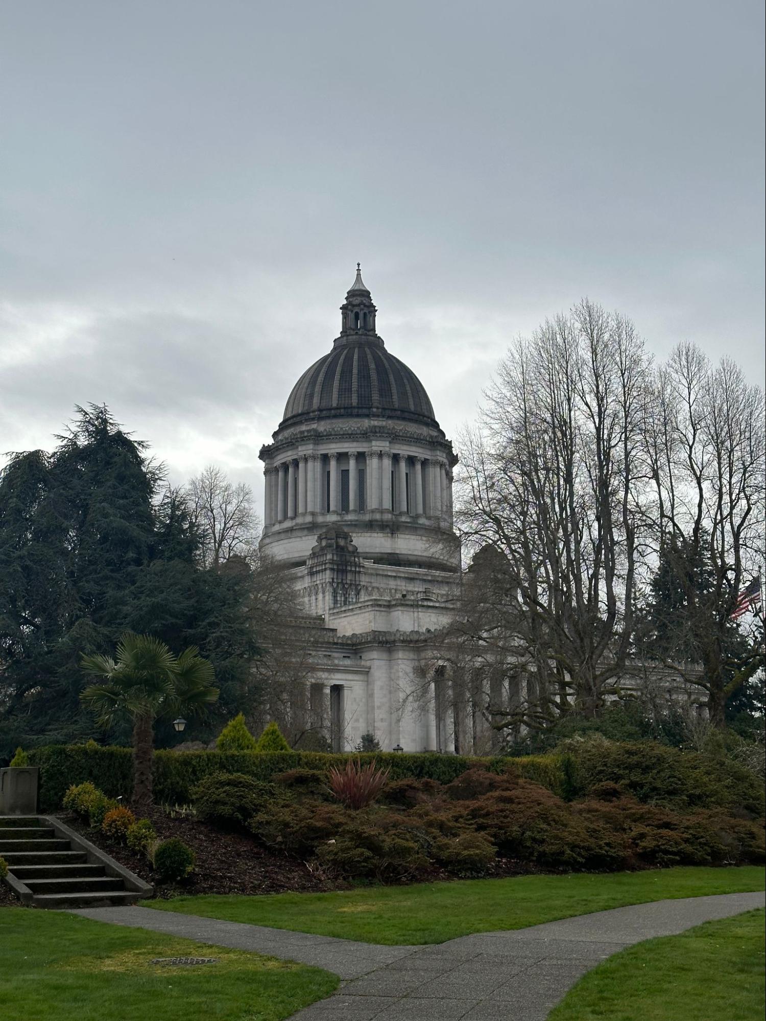 I arrived in Olympia around 3pm to clouds and light rain, but nothing too bad. The capitol is beautiful, with lots of vegetation and statues around. I made my way to the actual capitol building where I found some people waiting on the steps handing out snacks during their “day of action” for affordable housing and the homelessness crisis in the state. They had members of their organization inside the capitol at the same time, working with lawmakers to help find solutions to these issues.