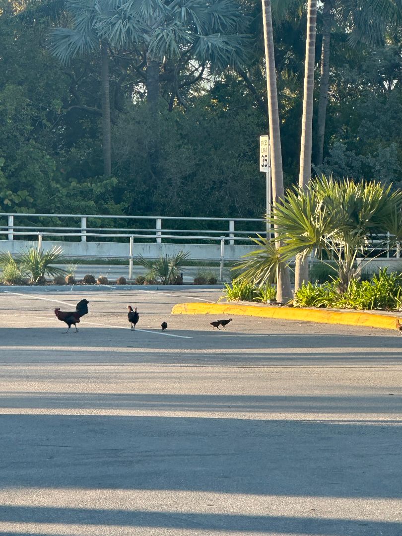 While walking around Key West, we also found a bunch of wild chickens, both walking around and also sitting in the trees above us! Apparently they were brought here and then eventually just released into the wild, and they’ve survived on their own ever since then. They seem smarter than deer about staying off the road though, so that may be part of why they’re still here.