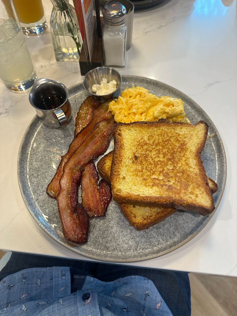 We woke up around 10am, and quickly got out and about and went to a place called OEB for breakfast. It felt like a very fancy place, and was almost completely full except for the seats we got and maybe another table. I got a pretty simple breakfast with some meats and eggs, like what I get at Denny’s but nicer obviously. Sophia got some breakfast tacos which she thoroughly enjoyed.