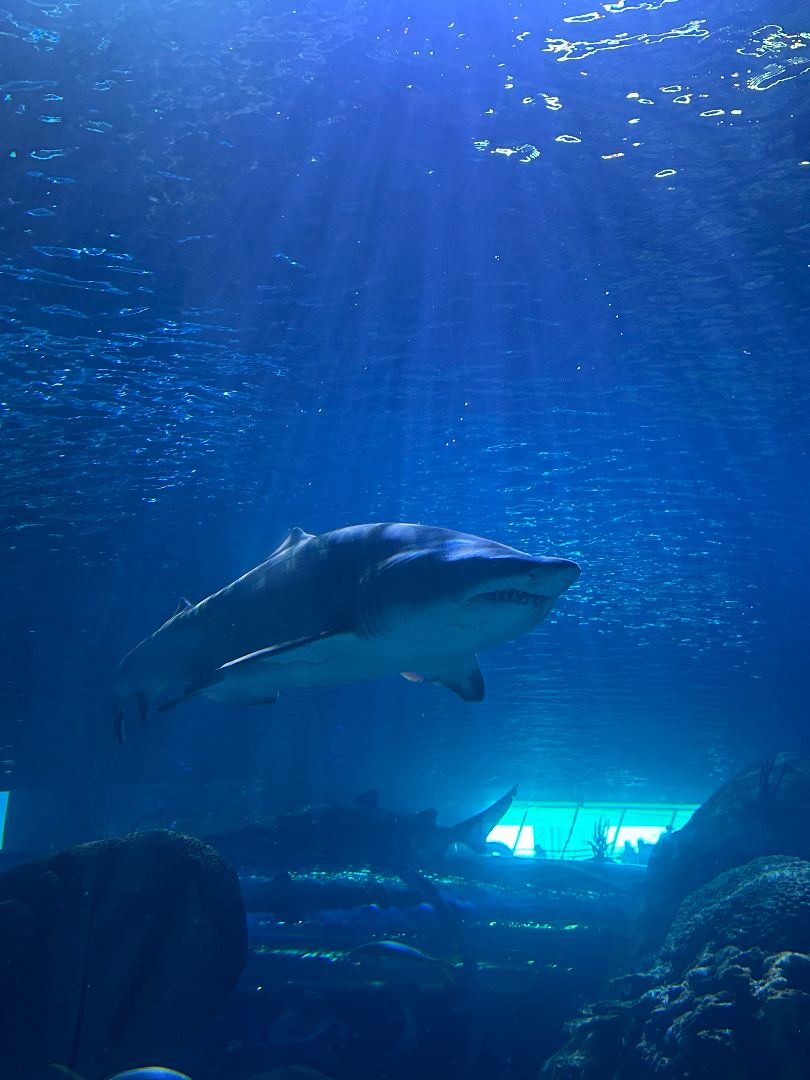 We then walked to the aquarium where we were able to get me in for 30% off using Sophia’s yearly pass. The staff member that sold me my ticket also complimented by shark shirt I got yesterday! It was quite busy, and since we arrived right on the hour, a lot of people were trying to get in with their ticket, since it’s hourly timed entry (though you can enter any time during the hour and stay as long as you want, people just like to show up on the hour despite the recommendation not to). The first bit of the aquarium was very busy, with lots of children running around, but as we got further in it quieted down a little bit.
