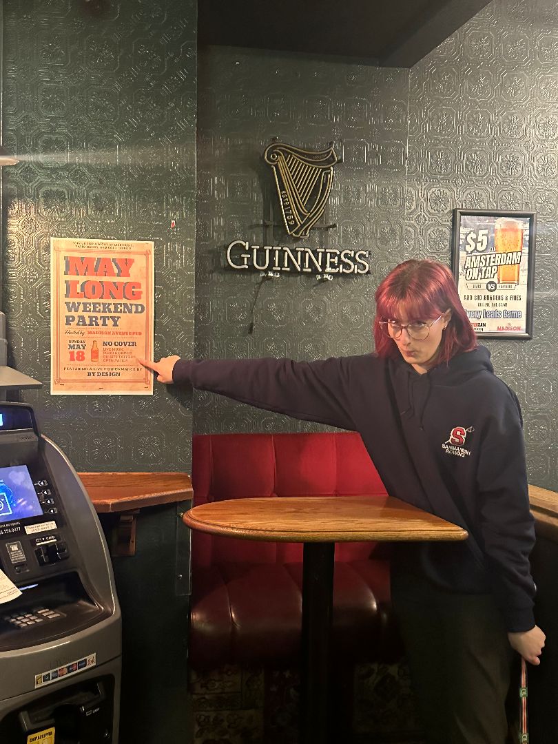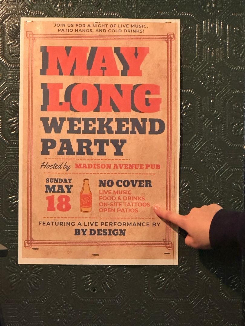 The Leafs game was playing tonight, which we had forgotten about and didn’t come to the bar to watch, but since it was on we couldn’t not watch. It was the Toronto Maple Leafs vs the Florida Panthers, and it was game 7, so this was the deciding factor for which one would stay in the Stanley Cup playoffs. While watching, Sophia saw a sign saying that over the long weekend they were having different events, and tonight there was going to be on-site tattoos. We couldn’t find any more information, so we asked the staff member that helped us before and she was also confused. She said she’d find out though and let us know when she had more information.