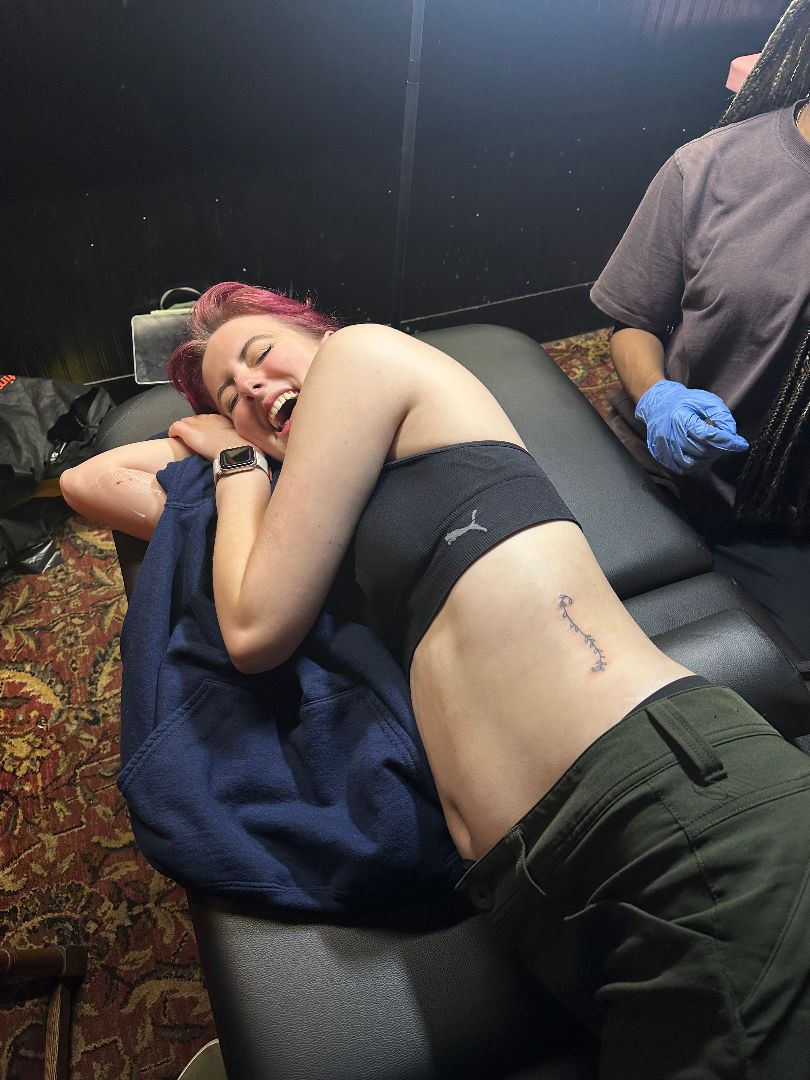 She decided on a vine-like tattoo going up her side, and we headed over to the artist, paid, and she got ready. Getting a tattoo on your side is one of the more painful places to get one, so Sophia used her partners sweater to crunch on while she got the tattoo done. During the tattoo, the Leafs start losing even more, and the game ends with a horrendous 1-6 loss to the Panthers. The Leafs are now officially out of the Stanley Cup, continuing their trend of losing in game 7.
