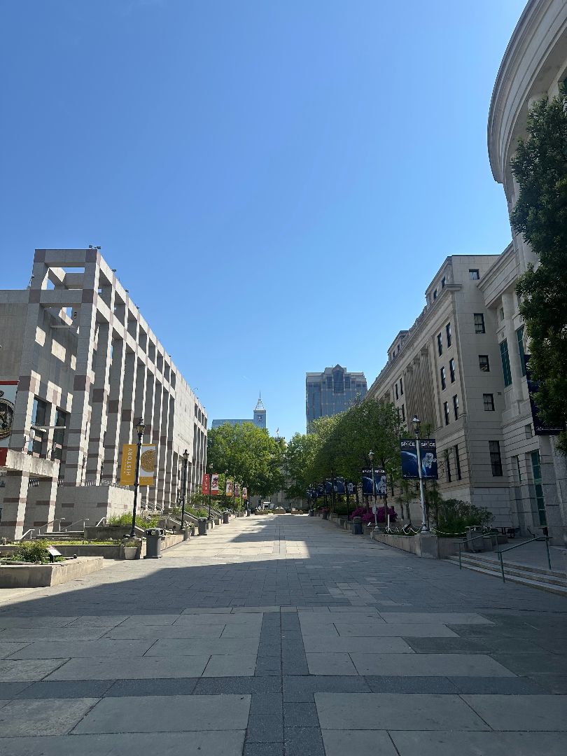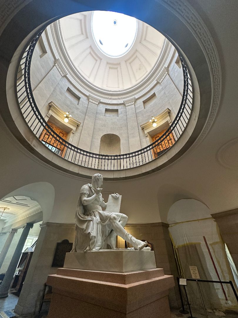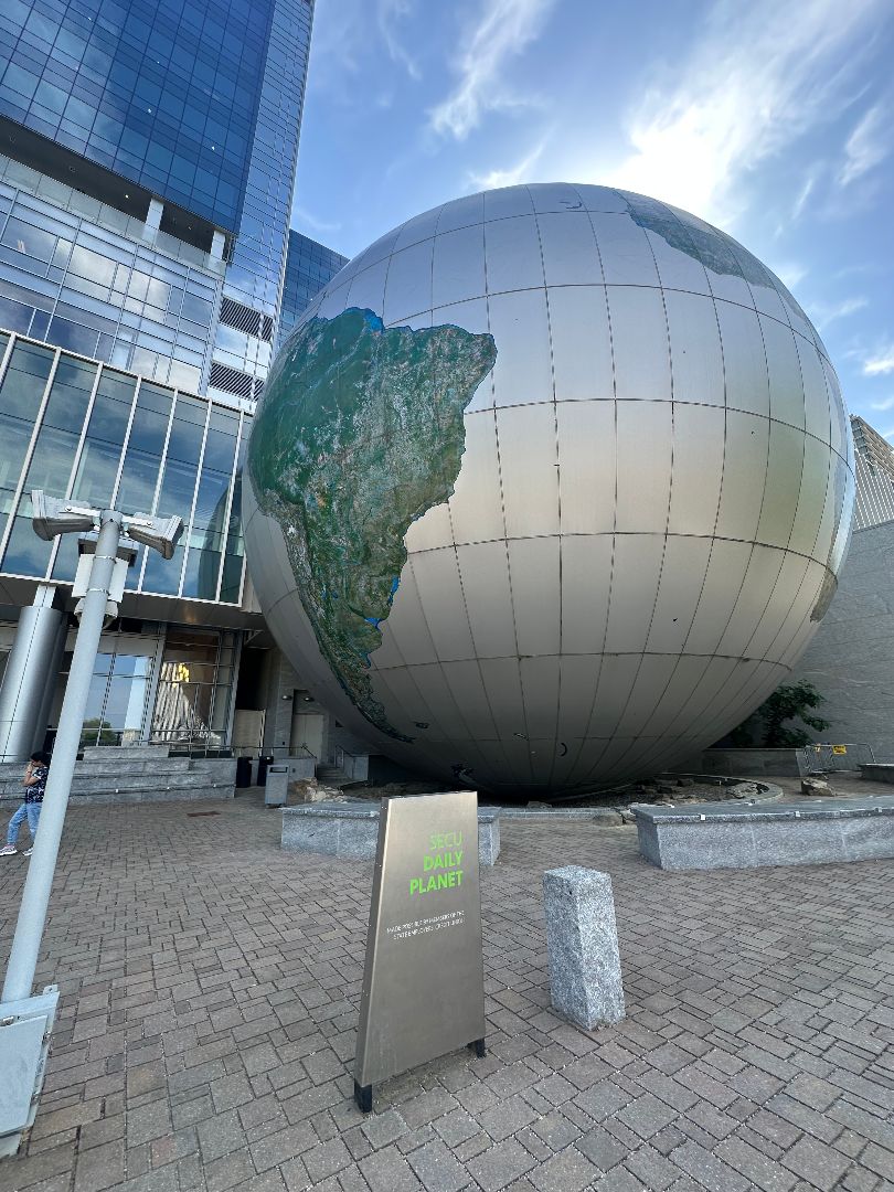 Not really bothered, we carried on to Raleigh and parked on the street downtown. We walked to the capitol building past the North Carolina Museum of Natural Sciences, which had a massive globe outside, which was pretty cool. The capitol itself was pretty nice, but it was another one where it’s kind of hard to know which side is the front. We went inside first, walking up the really uneven stairs to the second floor to see the chambers and look up into the dome. When we were done, we went back outside, found the front, and got our photo. It wasn’t the best, since you couldn’t see the dome properly from the angle we were at, but it’ll do.
