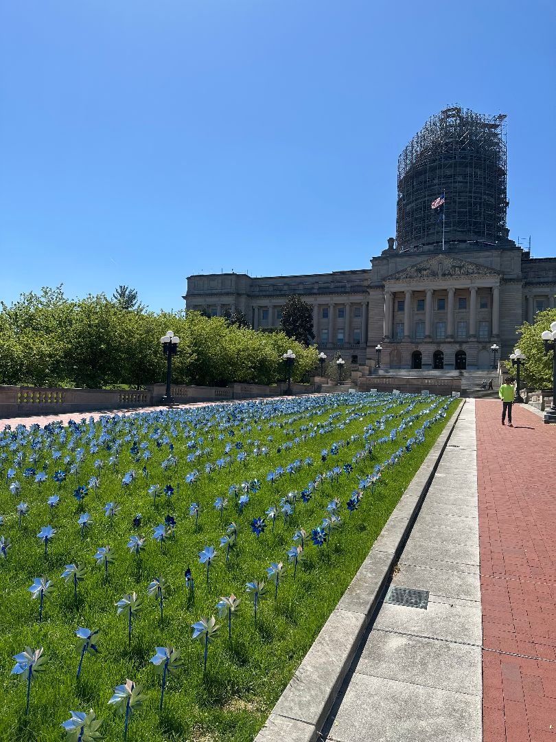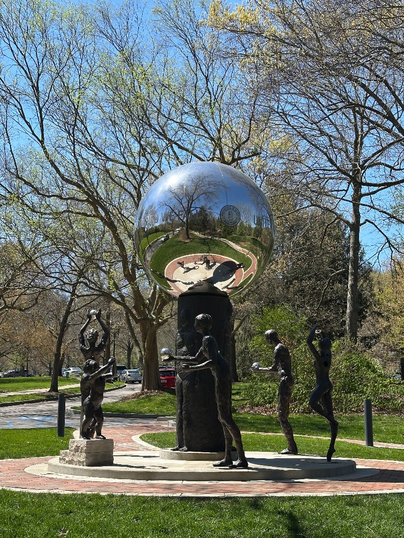 After breakfast, we drove a short few minutes to the Kentucky capitol building, where we parked down the street and walked up the hill towards the building. The dome of the capitol is currently under construction which hides some of the beauty of the building, but it was still a really nice capitol. They had a patch of grass out front with a bunch of blue and silver pinwheels, each representing 17 children born in Kentucky in the last year. We also found a large shiny ball statue, which turned out to be a COVID memorial. I’ve noticed that on a lot of statues and such around the states, they explicitly state “No taxpayer funds were used”, because I guess people get really upset about what happens with their taxes if it’s not something that directly benefits them as an individual.