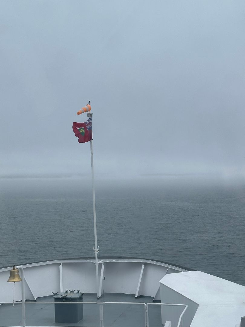It was quite foggy this time around, and so you could barely see anything out of the windows, but before we left the dock I was able to see along the coastline a bit, which was quite pretty. When it was time to leave, the boat backed out of the berth and turned around, which felt a bit odd in the tight constraints of the harbour, before heading full steam ahead (which still feels slow) towards Tobermory.