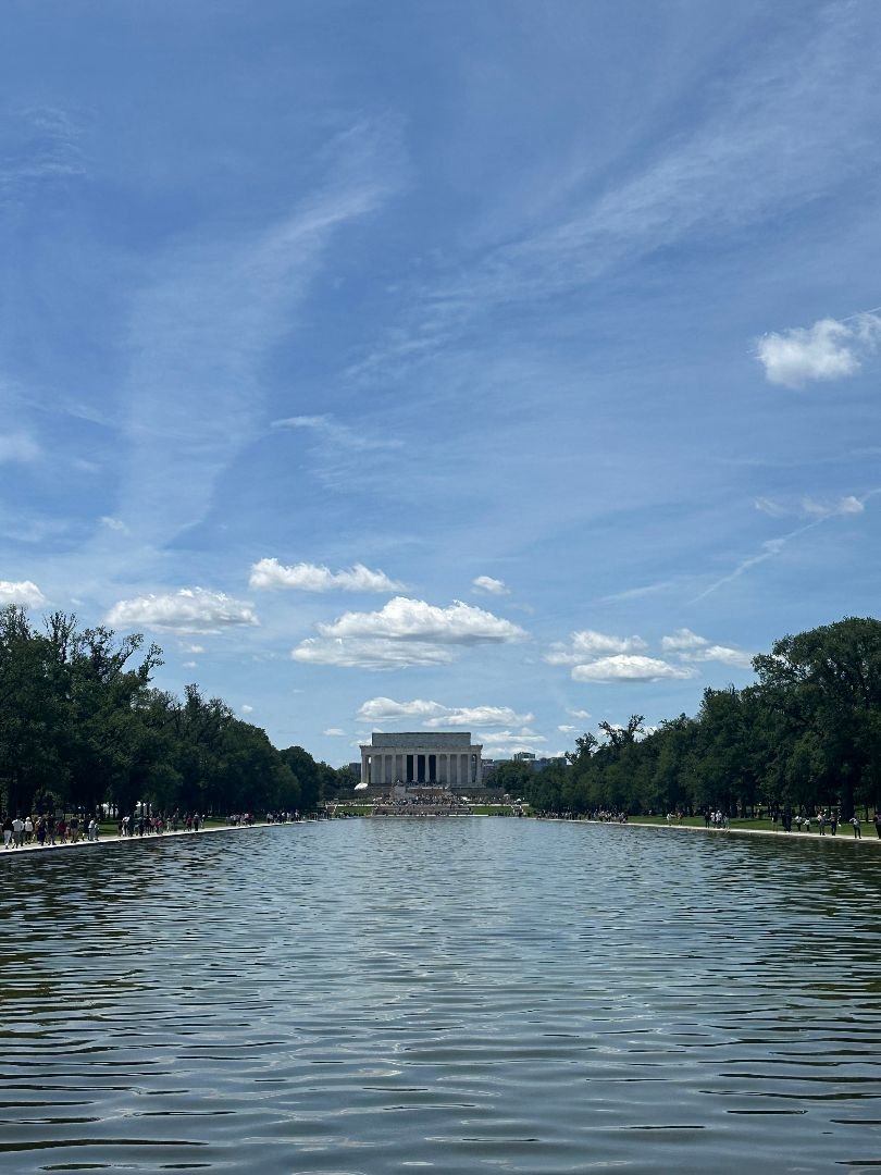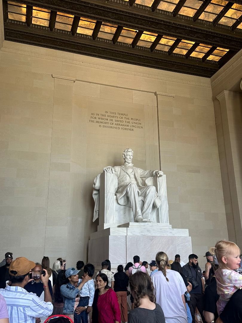 The Reflection Pool - the very long, shallow pool on the way to the Lincoln memorial - was quite nice, though along the edges you could definitely see the dirt and grime along with some trash building up. It could probably do with a more regular cleaning but it was still a very nice view. The pool lead us all the way to the Lincoln Memorial, a large building with a huge statue of Abraham Lincoln in it, along with the Gettysburg Address and the Second Inaugural Address in huge engraved text along the wall.
